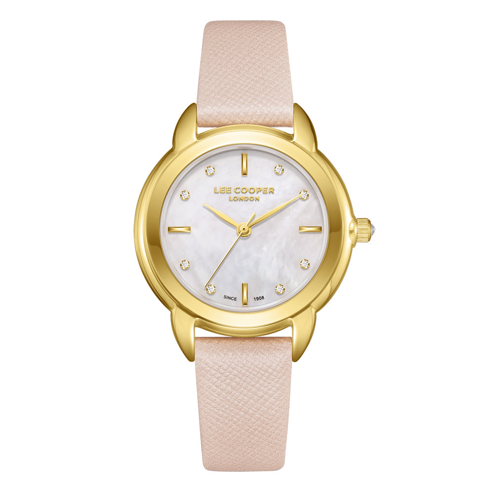 Часовник Lee Cooper LC08025.120 – Дамски модел с позлатен корпус и бежова кожена каишка