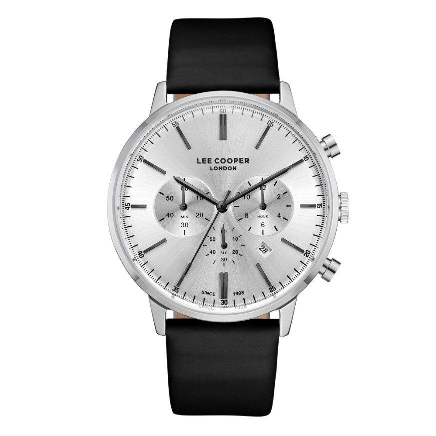 Мъжки часовник Lee Cooper с класически дизайн от колекцията Classic Chronograph. Корпус изработен от супер метал - специална сплав, създадена от марката. Диаметър на корпуса 45мм. Черна каишка от естествена кожа. Сребрист дисплей хронограф. Стъкло минерал-кристал. Задвижва се от кварцов механизъм. Водоустойчивост 3 ATM - допускат се леки пръски, не се препоръчва обилно мокрене.
