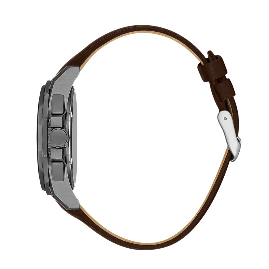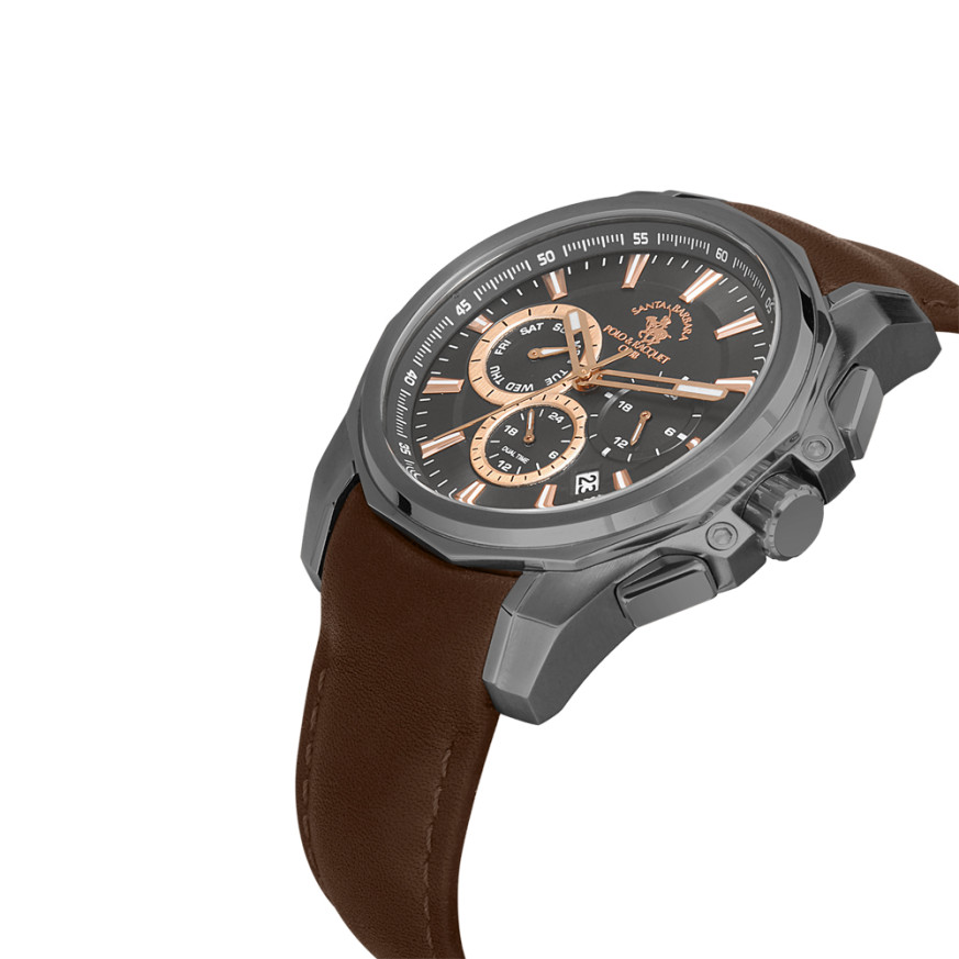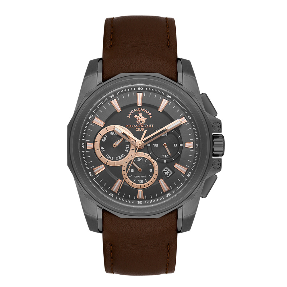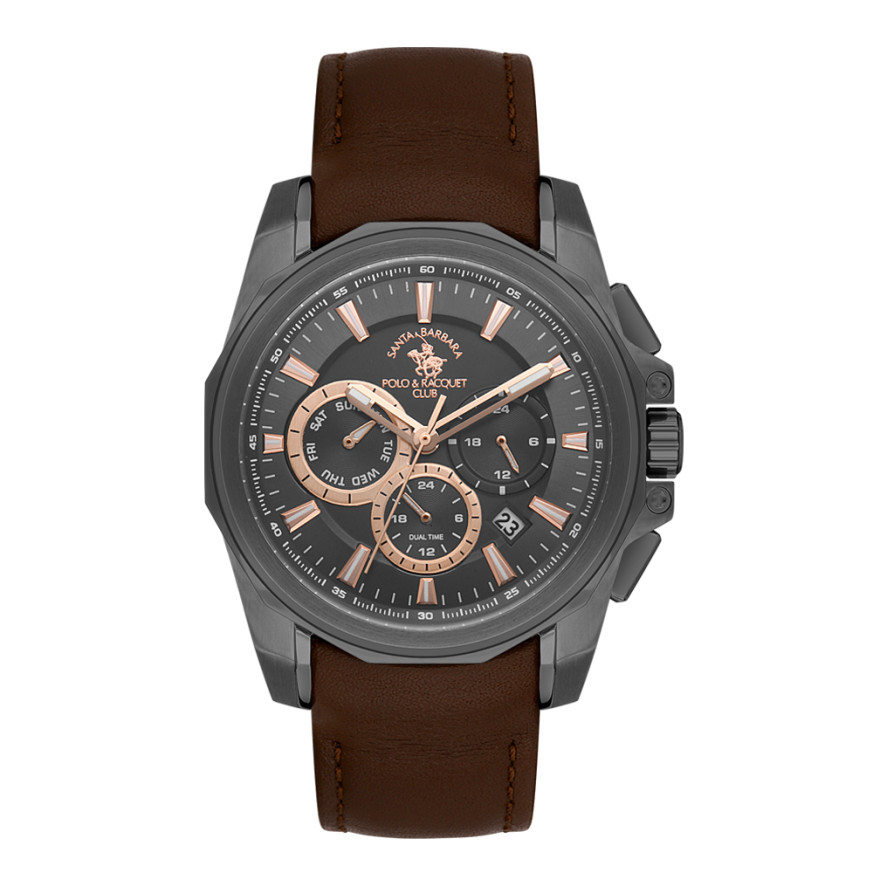 Мъжки часовник със спортно-елегантен дизайн от колекцията Prive. Мултифункционален дисплей с показатели за дата, ден и двойно време. Корпус от стомана в комбинация с каишка от естествена кожа. Минерално стъкло, устойчиво на надраскване. Задвижва се от кварцов механизъм. Водоустойчивост 5 ATM - допускат се леки пръски и взимане на душ, не се препоръчва обилно мокрене.