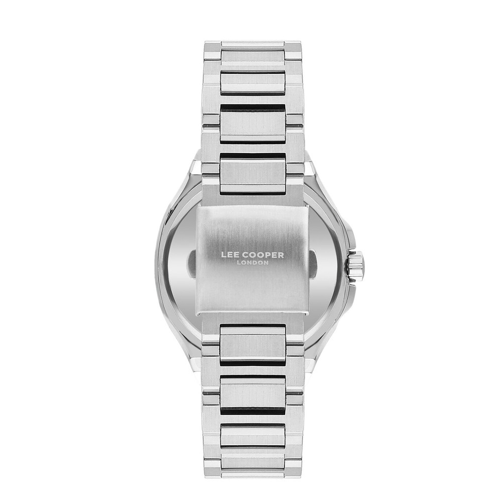 Спортно-елегантен часовник Lee Cooper с модерен впечатляващ дизайн. Дисплеят е скелетон в сив цвят с черни детайли и луминесцентно покритие върху стрелките и индексите. Стъклото е минерал-кристал. Корпусът е изработен от супер метал и е в комбинация с верижка от неръждаема стомана. Диаметър на корпуса 43 мм. Задвижва се от автоматичен механизъм с калибър PT2681ZA. Водоустойчивост 5 ATM - допускат се леки пръски и взимане на душ, не се препоръчва обилно мокрене.