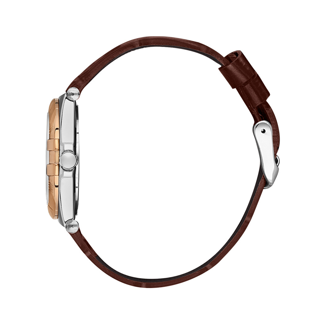 Елегантен дамски часовник от колекцията Luxury. Стилен аналогов дисплей с декорация от нежни кристали по индексите. Стъкло минерал-кристал. Корпус от стомана в комбинация с каишка от естествена кожа. Кварцов механизъм. Водоустойчивост 5 ATM - допускат се леки пръски и взимане на душ, не се препоръчва обилно мокрене.