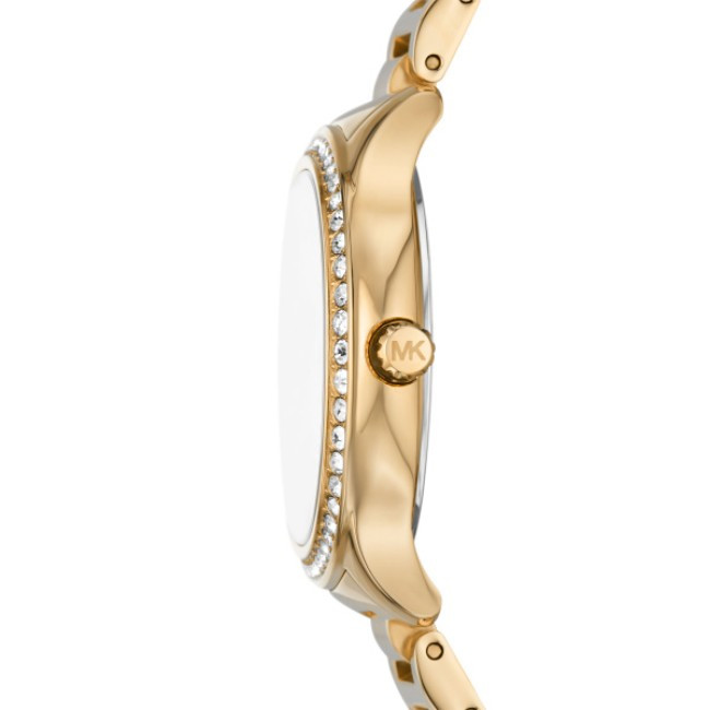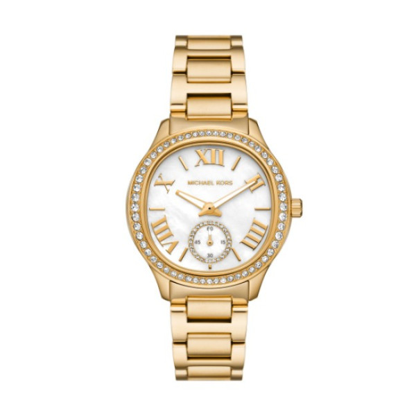 Дамски Часовник Michael Kors MK4805   Michael Kors MK4805 от колекция Sage e дамски кварцов часовник с mop кръгъл циферблат, златист корпус от неръждаема стомана с диаметър 38 mm и златиста верижка 18 mm, изработена от неръждаема стомана.