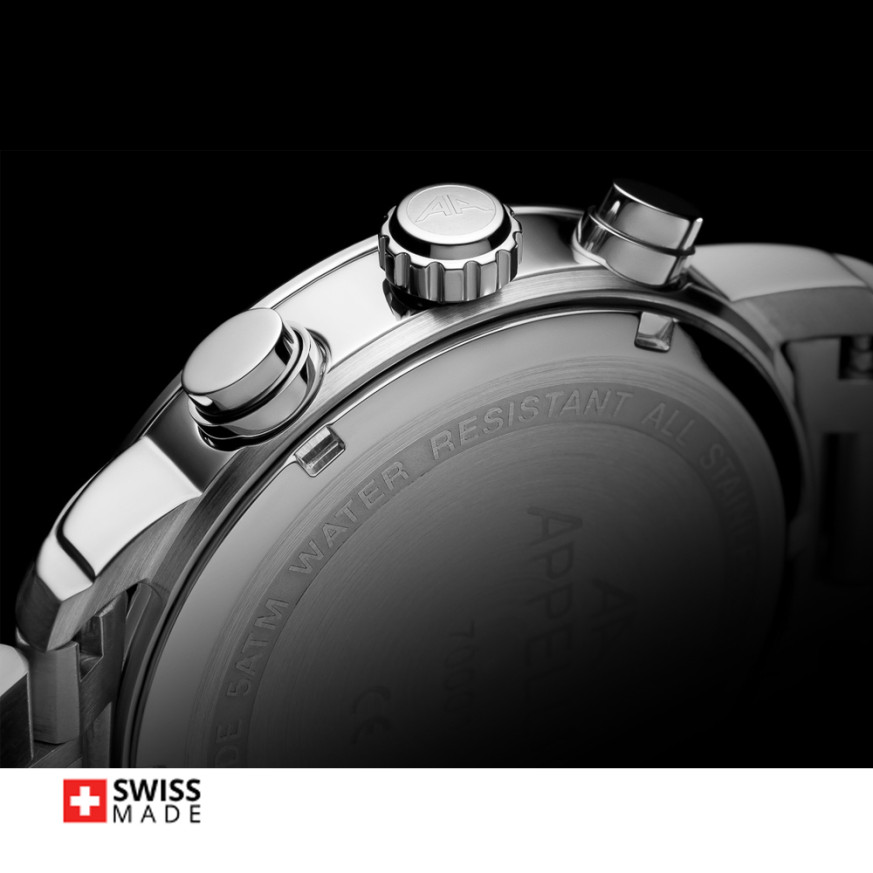 Часовник Appella L70001.5117CH впечатлява с изчистена спортно-елегантна визия, съчетаваща функционалност и стил. Моделът разполага с хронографски циферблат, защитен от сапфир-кристал за максимална устойчивост. Корпусът и верижката от благородна стомана осигуряват здравина, комфорт и класическо излъчване при ежедневно носене. Швейцарският кварцов механизъм RONDA 5030 Swiss Made гарантира прецизност и надеждност. С водоустойчивост до 5 ATM, този модел е подходящ за динамичен начин на живот, без да прави компромис със своя изискан стил.