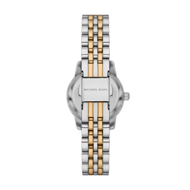 Часовник Michael Kors MK4865 от колекция Lexington е стилно бижу за съвременната жена. Синият циферблат контрастира красиво със сребристия корпус и двуцветната верижка, съчетавайки елегантност и модерен характер. Моделът е с компактен размер от 26 мм и прецизен кварцов механизъм, който гарантира точност и надеждност. Перфектен аксесоар за ежедневие и специални поводи.