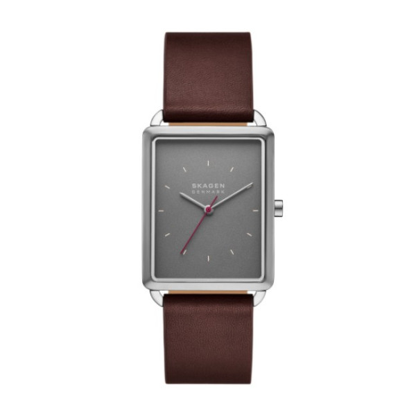 Мъжки Часовник Skagen SKW6932   Skagen SKW6932 от колекция Hagen e мъжки кварцов часовник със сив правоъгълен, north-south циферблат, сив корпус от неръждаема стомана с диаметър 36 mm и кафява каишка 20 mm, изработена от pro-planet кожа.