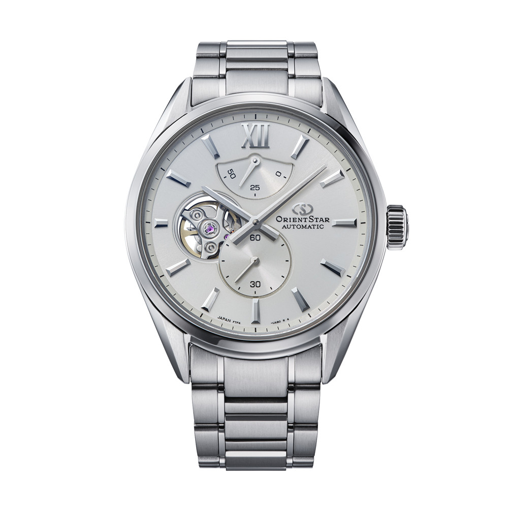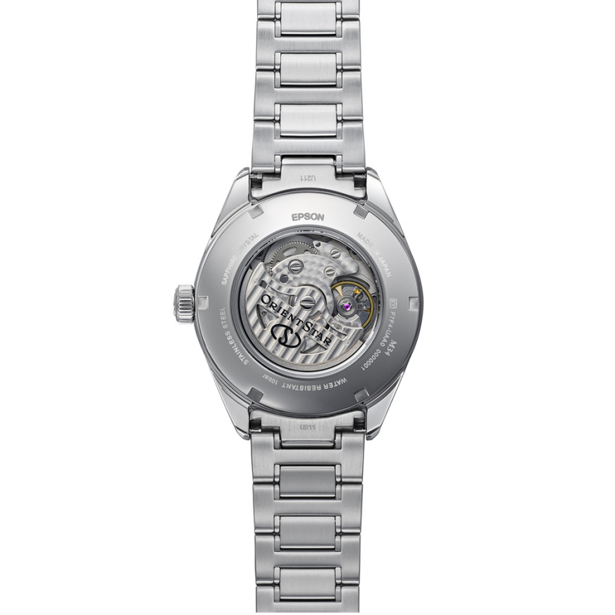 Часовник Orient Star RE-BY0011S от колекцията M-Collection /M34 F7/ съчетава класическа елегантност и модерна инженерна прецизност. Сребристият циферблат е подчертан с полускелетен отвор, който разкрива част от механизма, индикатор за резерв на мощността и отделен секундарник. Корпусът и верижката са изработени от неръждаема стомана, осигурявайки здравина и стил, а сапфир-кристалът със супер антирефлексно покритие гарантира отлична видимост. Автоматичният механизъм F7F44 с 24 камъка и 50-часов резерв на мощността може да бъде наблюдаван през прозрачния гръб. С диаметър 40 мм и водоустойчивост до 10 ATM, този модел е идеален както за ежедневна употреба, така и за елегантни поводи.