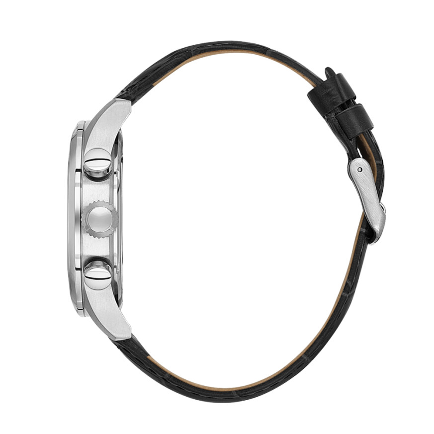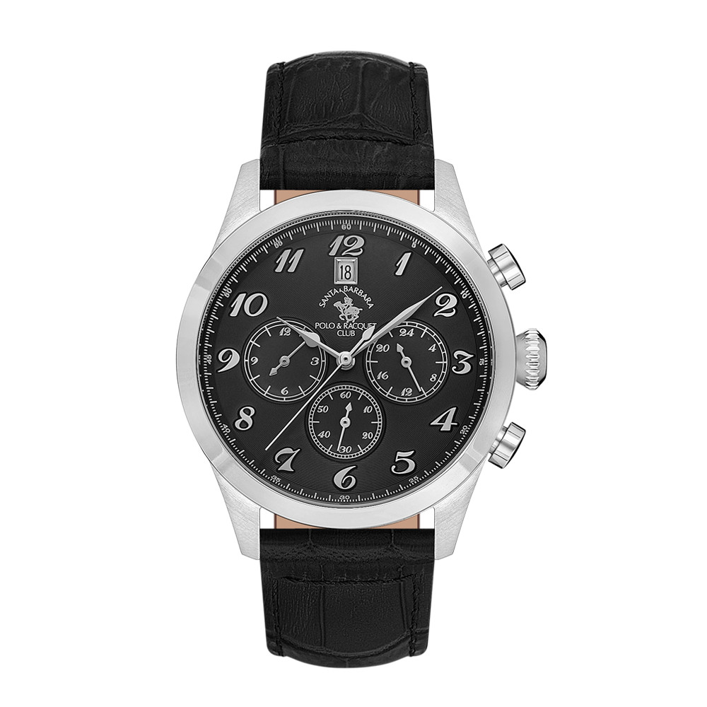 Мъжки часовник от колекцията Noble с модерен изискан дизайн. Моделът е с корпус от стомана и каишка от естествена кожа. Черен мултифункционален дисплей със сребристи стрелки и цифри. Стъкло минерал-кристал. Часовникът се задвижва от кварцов механизъм. Водоустойчивост 5 ATM - допускат се леки пръски и взимане на душ, не се препоръчва обилно мокрене.