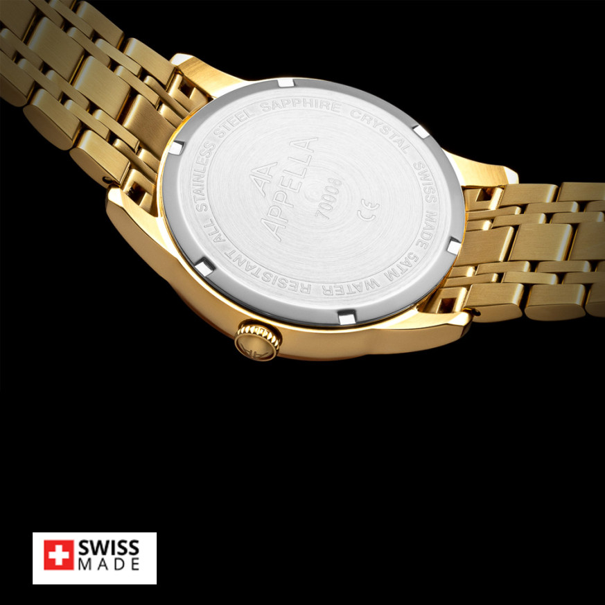 Часовник Appella L70008.1163QF съчетава спортно излъчване, елегантен стил и функционалност, подходящи за активното ежедневие на модерния мъж. Корпусът и верижката от благородна стомана осигуряват висока издръжливост, докато сапфир-кристалът предпазва от надраскване. Мултифункционалният дисплей добавя практична стойност и допълнителни възможности, а швейцарският кварцов механизъм RONDA X20 Swiss Made гарантира надеждна точност. С водоустойчивост до 5 ATM моделът остава перфектен избор за динамични ситуации, без да прави компромис със стила.