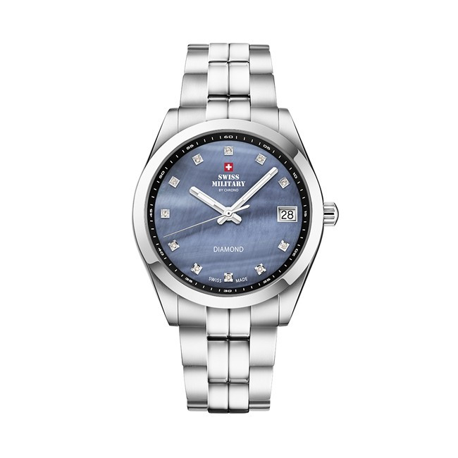 Дамски Часовник Swiss Military By Chrono SM30210.01   Swiss Military By Chrono SM30210.01 от колекция SM30210 е швейцарски кварцов  часовник със сребрист корпус от неръждаема стомана,сребриста верижка от неръждаема стомана и син циферблат.