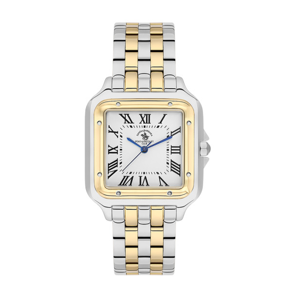 Мъжки часовник Santa Barbara Polo & Racquet Club с класически дизайн от колекцията Legend. Анологов дисплей в сив цвят с черни детайли и сини стрелки. Стъкло минерал-кристал. Корпус и верижка от неръждаема стомана. Задвижва се от кварцов механизъм с калибър 2035. Водоустойчивост 5 ATM - допускат се леки пръски и взимане на душ, не се препоръчва обилно мокрене.