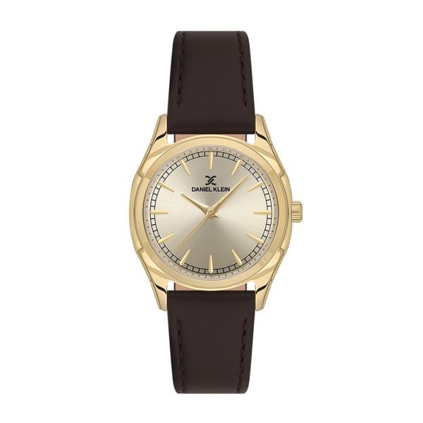 Класически модел дамски часовник Daniel Klein от колекцията Premium. Аналогов дисплей със семпъл дизайн. Стъкло минерал-кристал. Корпус изработен от метал. Тъмнокафява каишка от естествена кожа. Диаметър на корпуса 30 мм. Задвижва се от кварцов механизъм. Водоустойчивост 3 ATM - допускат се леки пръски, не се препоръчва обилно мокрене.