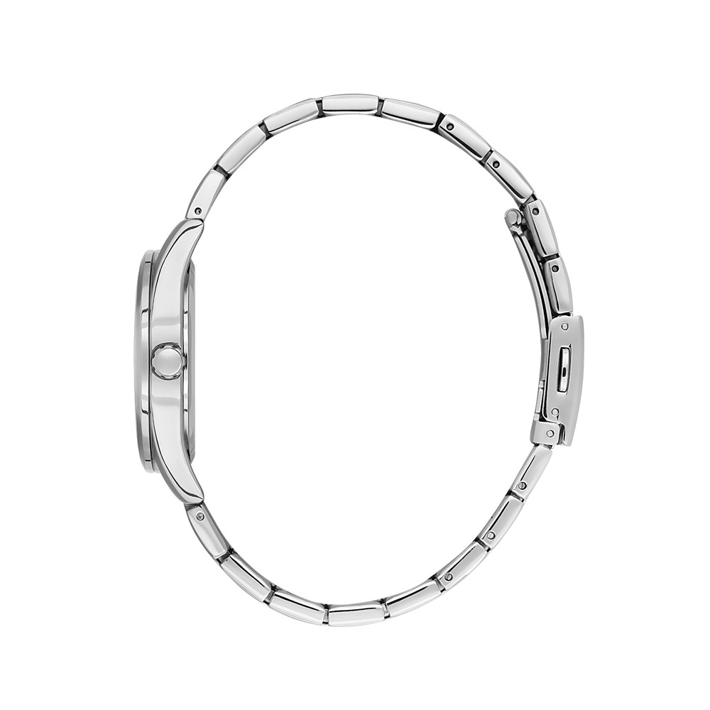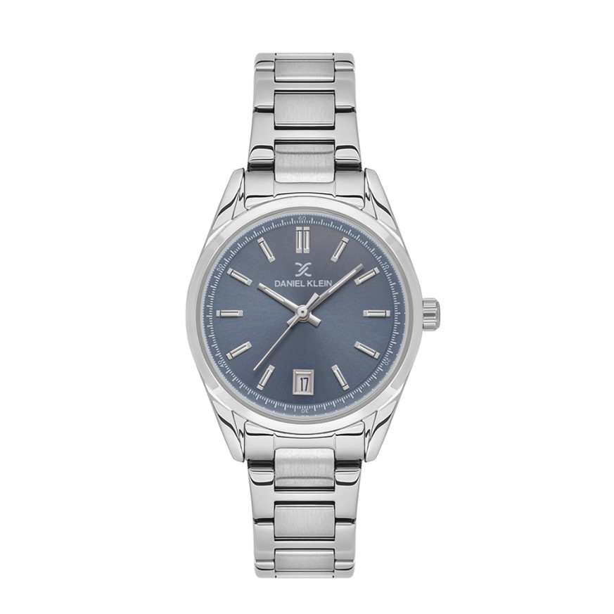 Класически модел дамски часовник Daniel Klein от колекцията Premium. Тъмносин аналогов дисплей със семпъл дизайн и показател за дата. Стъкло минерал-кристал. Метален корпус в комбинация с верижка от неръждаема стомана. Диаметър на корпуса 32 мм. Часовникът се задвижва от кварцов механизъм. Водоустойчивост 3 ATM - допускат се леки пръски, не се препоръчва обилно мокрене.