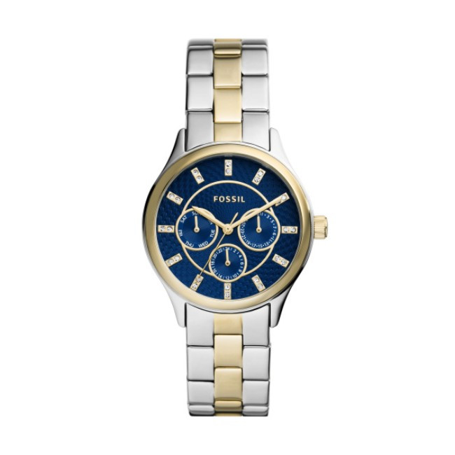 Дамски Часовник Fossil BQ3913   Fossil BQ3913 от колекция Modern Sophisticate e дамски кварцов часовник със син кръгъл циферблат, двуцветен корпус от неръждаема стомана с диаметър 36 mm и двуцветна верижка 18 mm, изработена от неръждаема стомана.