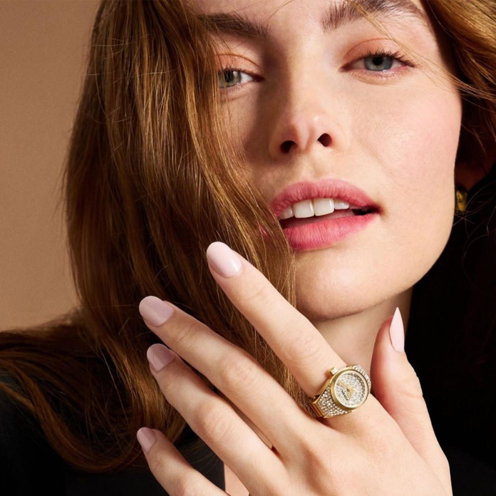 Дамски Часовник Fossil ES5392   Fossil ES5392 от колекция Watch Ring e дамски кварцов часовник със златист кръгъл циферблат, златист корпус от неръждаема стомана с диаметър LESS THAN 22 mm и златиста верижка 6MM mm, изработена от неръждаема стомана.