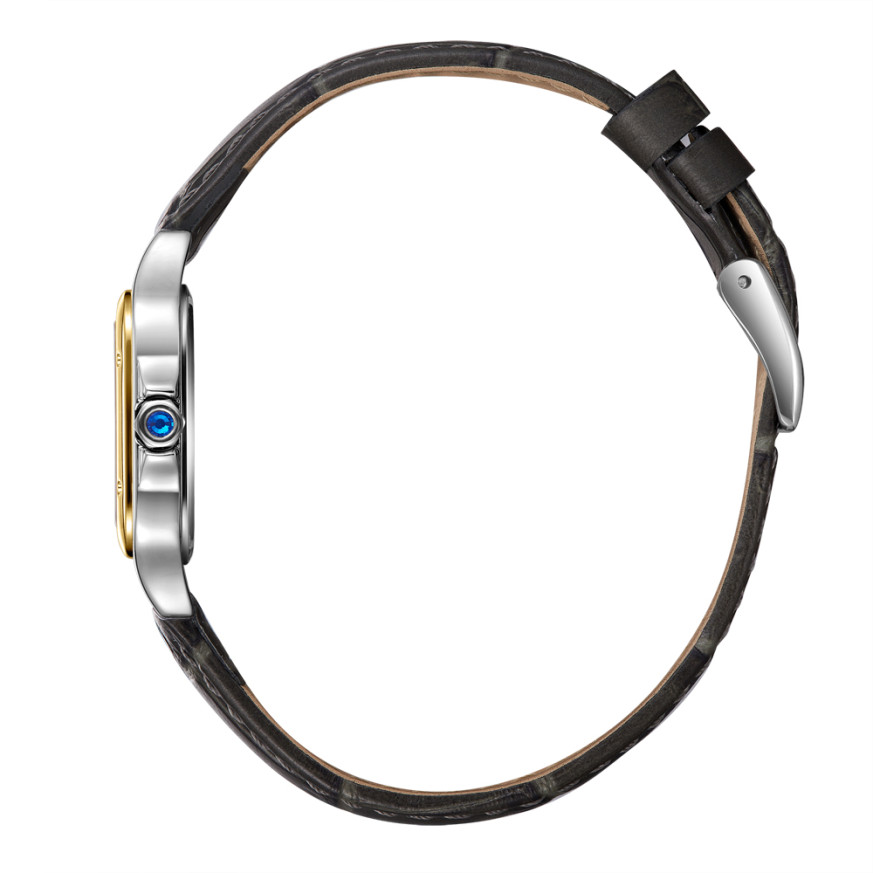 Класически модел дамски часовник Lee Cooper със стилен дизайн. Бял аналогов дисплей със сини стрелки и римски цифри в черен цвят. Стъкло минерал-кристал. Корпус изработен от супер метал - специална сплав, създадена от марката. Тъмносива каишка от естествена кожа. Задвижва се от кварцов механизъм. Водоустойчивост 3 ATM - допускат се леки пръски, не се препоръчва обилно мокрене.