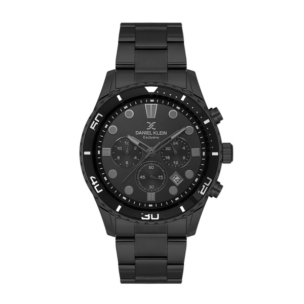 Модерен мъжки часовник Daniel Klein със спортно-ежедневен дизайн от колекцията Exclusive. Моделът е с дисплей хронограф. Луминесцентно покритие върху стрелките и индексите. Стъкло минерал-кристал. Корпус изработен от метал. Верижка от неръждаема стомана. Диаметър на корпуса 44 мм. Часовникът се задвижва от кварцов механизъм. Водоустойчивост 5 ATM - допускат се леки пръски и взимане на душ, не се препоръчва обилно мокрене.