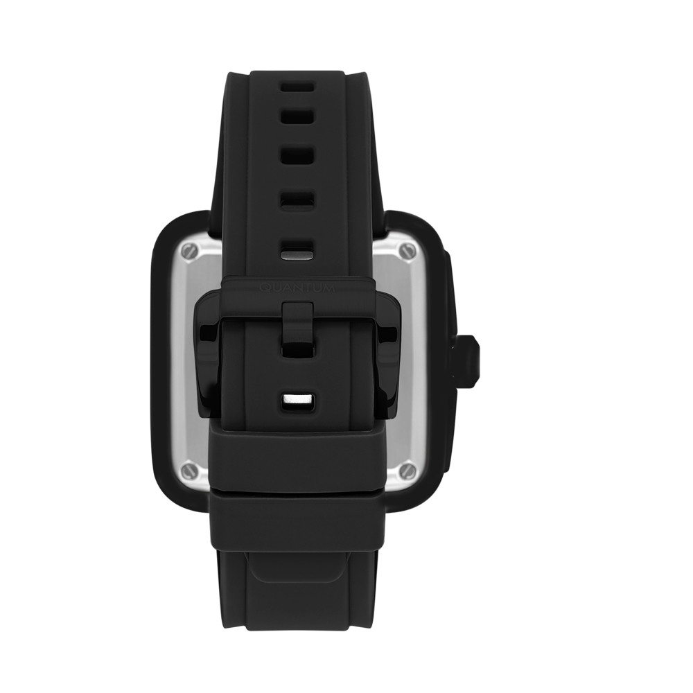 Мъжки часовник Quantum със спортно-елегантен дизайн от колекцията Q-Master. Аналогов дисплей с видим баланс, 24-часов формат и отделен секундарник. Стъкло минерал-кристал . Корпус изработен от неръждаема стомана. Черна силиконова каишка. Часовникът се задвижва от автоматичен механизъм с 21 камъка. Водоустойчивост 5 ATM - допускат се леки пръски и взимане на душ, не се препоръчва обилно мокрене.