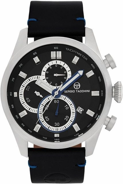 Мъжки часовник Sergio Tacchini  със спортно-елегантен дизайн от колекцията Archivio Chronograph. Моделът е с дисплей хронограф (точност 1/10 от секундата и максимално измервано време 60 минути). Фосфоресцентно покритие на стрелките и индексите. Минерално стъкло, устойчиво на надраскване. Корпус от неръждаема стомана, съчетан с каишка от естествена кожа. Прецизен кварцов механизъм VD57 SEIKO HATTORI произведен в Япония. Водоустойчивост 5 ATM - допускат се леки пръски и взимане на душ, не се препоръчва обилно мокрене.