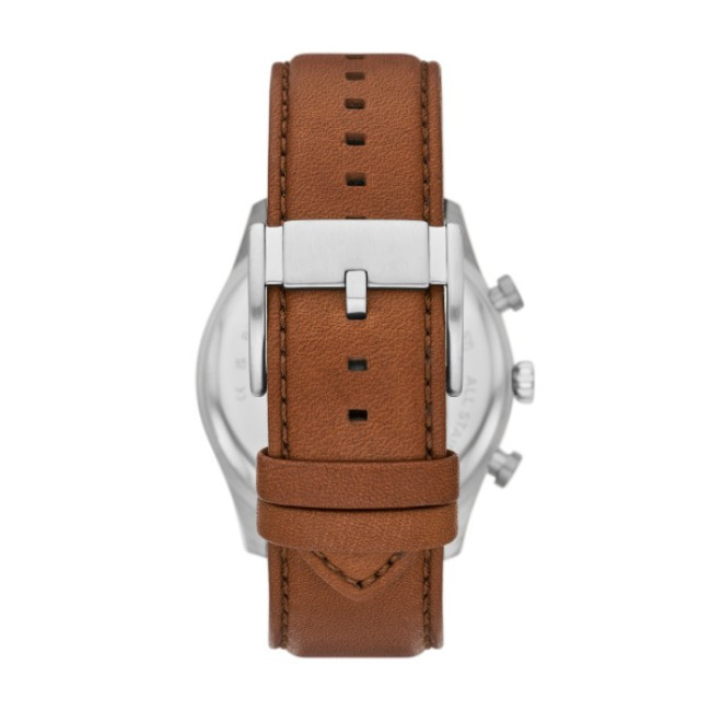 Мъжки Часовник Fossil BQ2748   Fossil BQ2748 от колекция Sullivan e мъжки кварцов часовник с бял кръгъл циферблат, сребрист корпус от неръждаема стомана с диаметър 44 mm и кафява каишка 24 mm, изработена от естествена кожа.