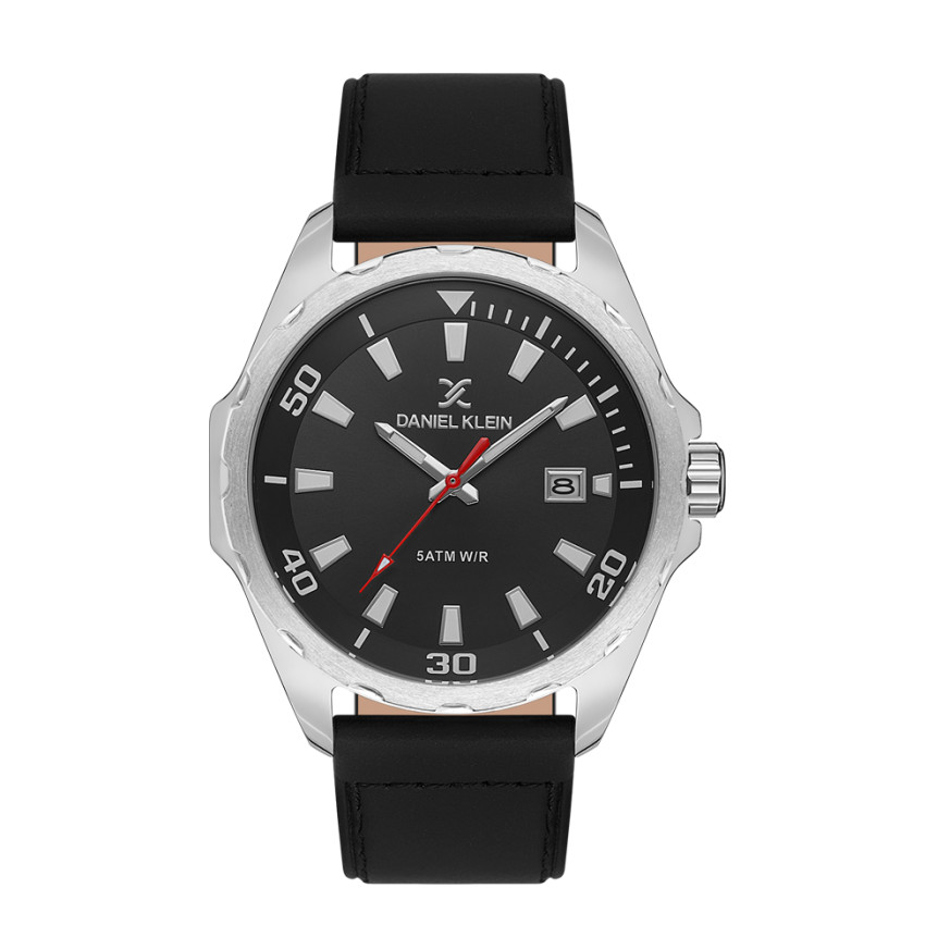 Мъжки часовник Daniel Klein от колекцията Premium. Моделът е  с метален корпус и кожена каишка. Аналогов дисплей с показател за дата. Стъкло минерал-кристал. Кварцов механизъм. Водоустойчивост 5 ATM - допускат се леки пръски и взимане на душ, не се препоръчва обилно мокрене.