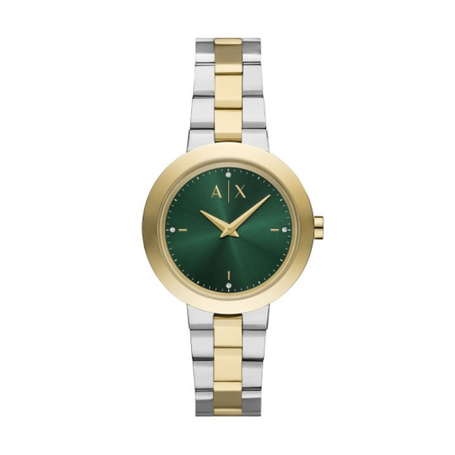 Часовник Armani Exchange AX5176 е дамски кварцов модел от колекция Jackie със зелен циферблат и изискана двуцветна верижка от благородна стомана. С корпус 36 мм и елегантен дизайн, този модел е перфектен аксесоар за жените, които ценят лукса, прецизността и стилното излъчване.