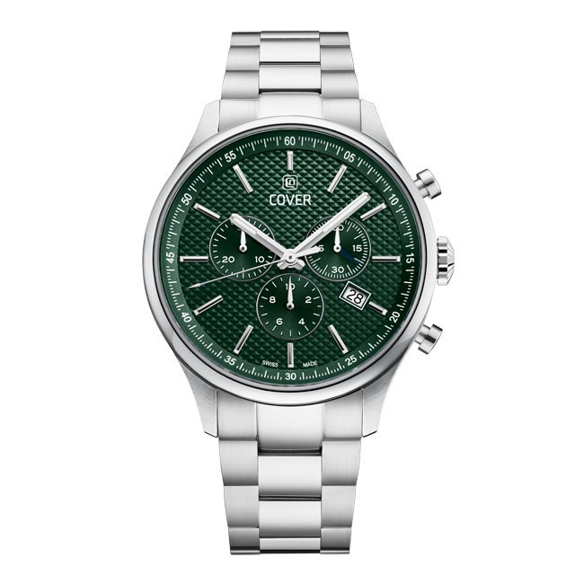 Часовник COVER CO220.04 – впечатляващ мъжки швейцарски кварцов хронограф от колекция CHAPMAN CHRONO II, създаден за мъже с вкус към динамиката и стила. Зеленият циферблат с хронографски индекси придава съвременен и спортно-елегантен характер, а корпусът и верижката от благородна стомана подчертават усещането за качество. Сапфиреното стъкло осигурява отлична защита, а водоустойчивостта до 10 ATM го прави подходящ за активен начин на живот. Швейцарска прецизност и дизайн в едно – идеалният часовник за всеки ден.