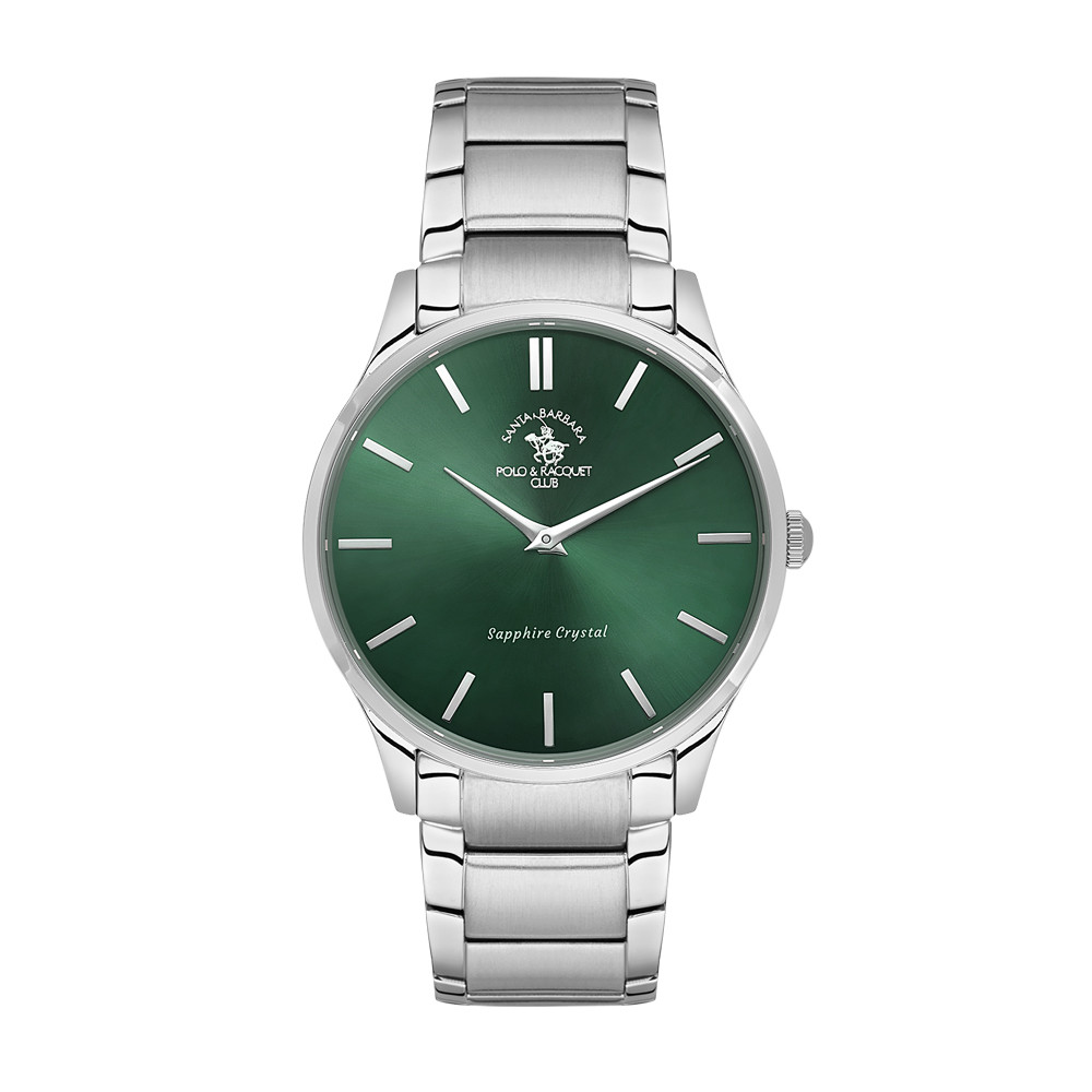 Класичесски модел мъжки часовник със стилен дизайн от колекцията Noble. Корпус и верижка изработени от неръждаема стомана. Зелен аналогов дисплей със сребристи детайли. Стъкло сапфир-кристал. Диаметър на корпуса 41 мм. Задвижва се от кварцов механизъм VX50. Водоустойчивост 5 ATM - допускат се леки пръски и взимане на душ, не се препоръчва обилно мокрене.