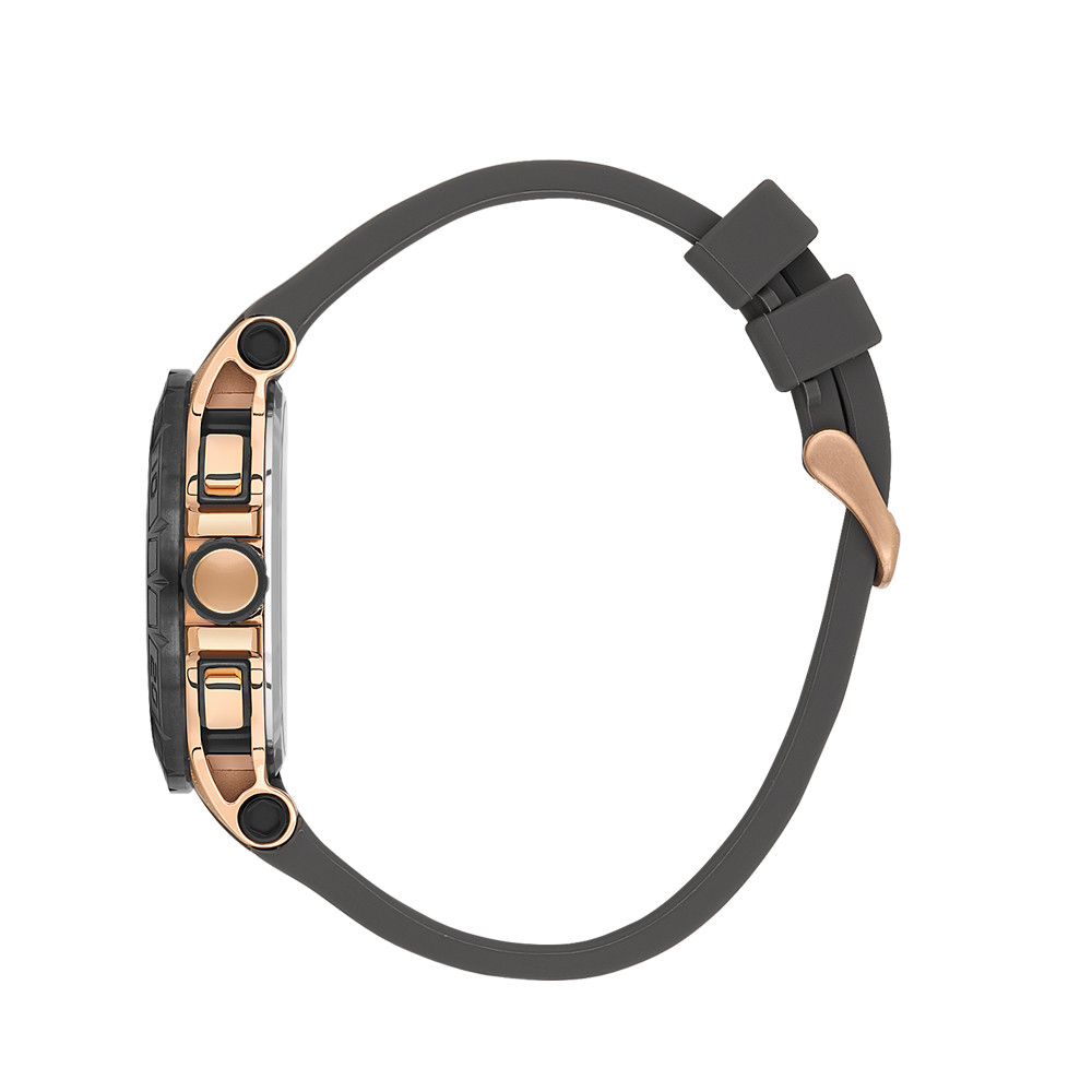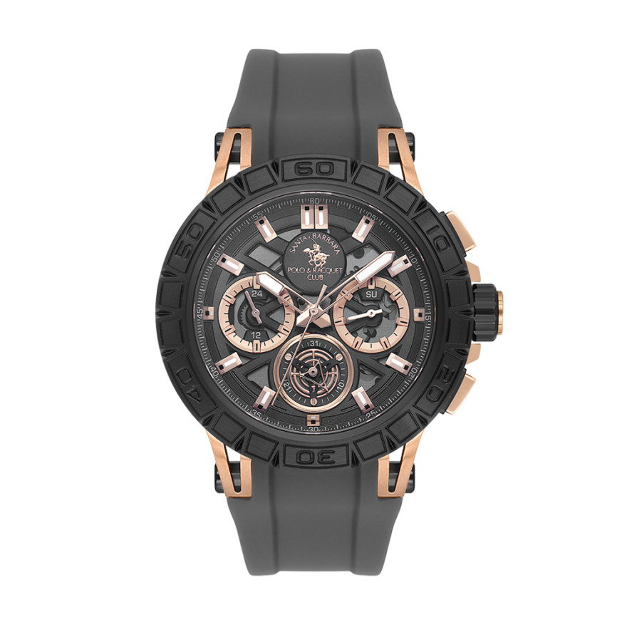 Впечатляващ модел мъжки часовник от колекцията Prive. Корпус изработен от неръждаема стомана. Черна силиконова каишка. Диаметър на корпуса 45.5 мм. Стъкло минерал-кристал. Черен дисплей хронограф със скелетонизиран дизайн. Часовникът се задвижва от кварцов механизъм VX9J. Водоустойчивост 10 ATM - позволява мокрене, къпане и плуване във водни басейни.