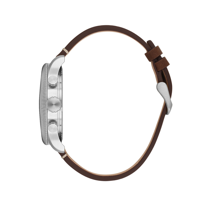 Мъжки часовник с модерен дизайн от колекцията Legend. Корпус от неръждаема стомана в комбинация с каишка от естествена кожа. Диаметър на корпуса 42 мм. Дисплей хронограф с показател за дата и тахиметрична скала. Стъкло минерал-кристал. Часовникът се задвижва от кварцов механизъм TMI-VD53. Водоустойчивост 5 ATM - допускат се леки пръски и взимане на душ, не се препоръчва обилно мокрене.