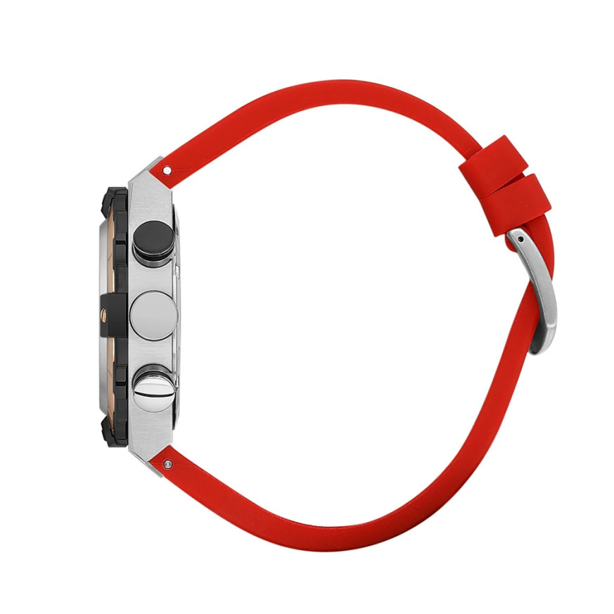 Спортен модел мъжки часовник от колекцията Prive. Корпус от неръждаема стомана в комбинация със силиконова каишка. Диаметър 45 мм. Мултифункционален дисплей с показатели за дата, ден от седмицата, двойно време и 24 часов формат. Стъкло минерал-кристал. Задвижва се от кварцов механизъм. Водоустойчивост 5 ATM - допускат се леки пръски и взимане на душ, не се препоръчва обилно мокрене.