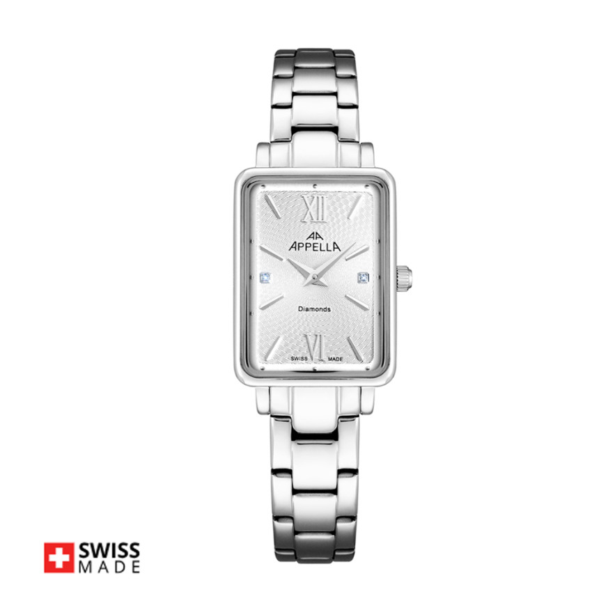Часовник Appella L50022.5163DQ – Дамски елегантен модел с диаманти и стоманена верижка