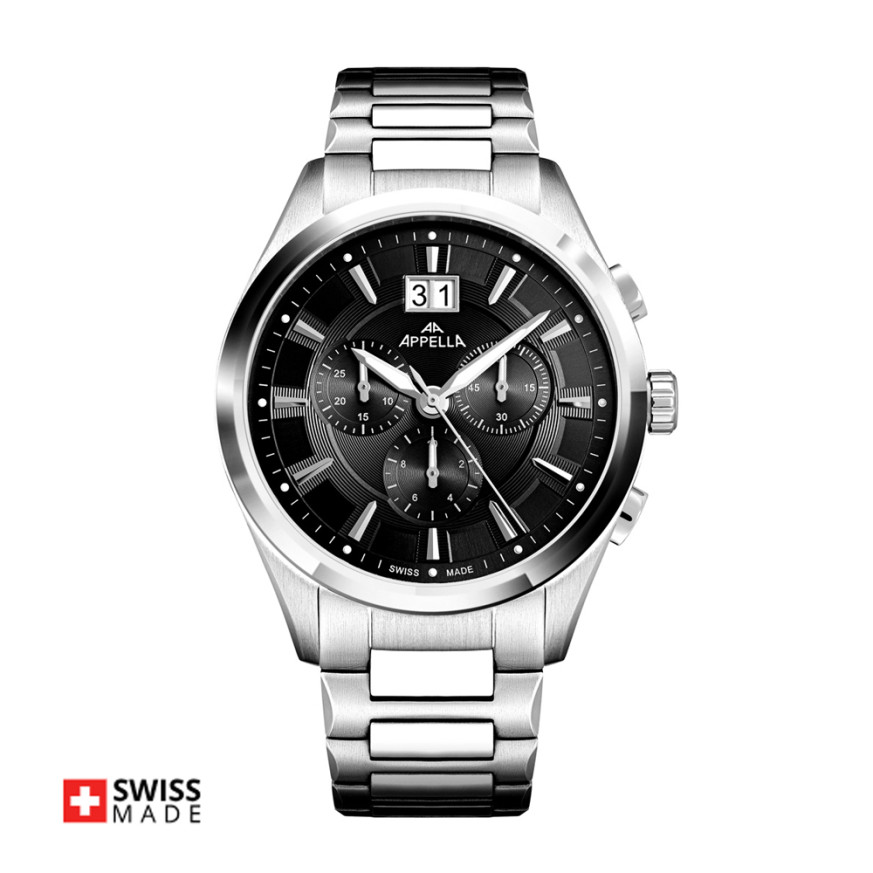 Часовник Appella L70016.5114CH – спортно-елегантен мъжки хронограф, който комбинира мощна функционалност и швейцарска прецизност. Корпусът и верижката от благородна стомана осигуряват устойчивост и стил, докато сапфир-кристалът с антирефлексно покритие гарантира ясна видимост при всякаква светлина. Хронографският дисплей добавя динамичен характер и практичност, а механизмът Ronda 5040B Swiss Made осигурява надеждна точност. С диаметър 42 мм и водоустойчивост 5 ATM, този модел е перфектен за активния мъж, който цени елегантността и функционалността в едно.