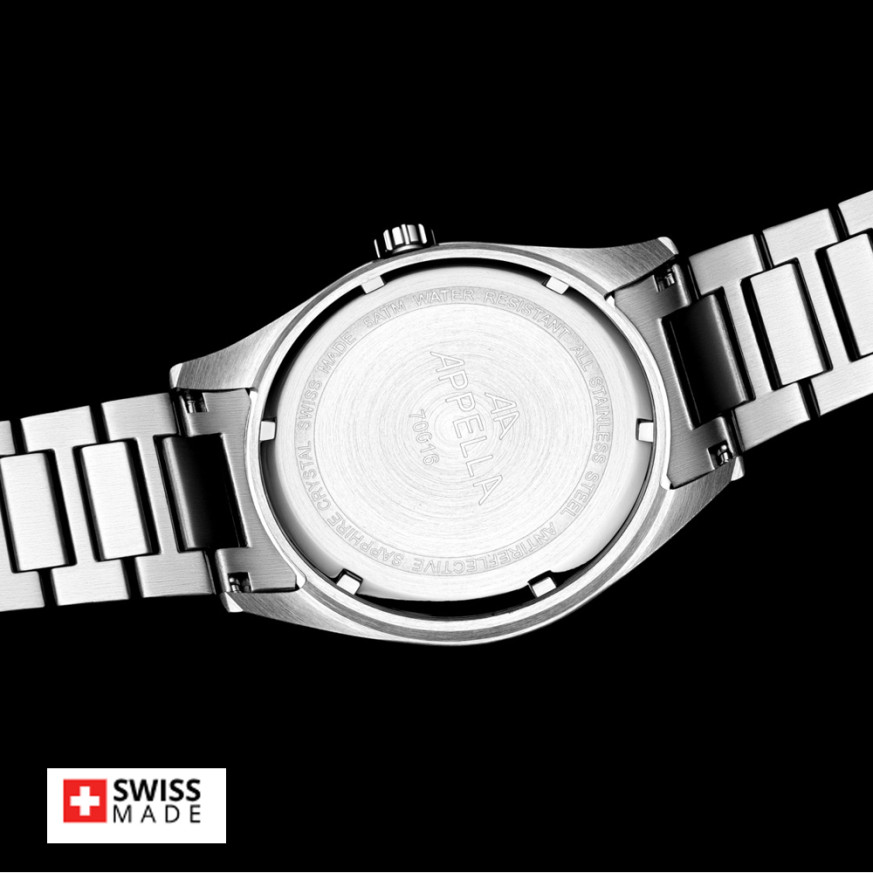 Часовник Appella L70016.R1R6Q – спортно-елегантен мъжки модел, съчетаващ прецизна швейцарска изработка и модерен дизайн. Корпусът и верижката от благородна стомана осигуряват издръжливост, а черният циферблат с индикатор за дата подчертава класическото му излъчване. Сапфир-кристалът с антирефлексно покритие гарантира отлична видимост и защита. Задвижван от надежден кварцов механизъм Ronda 715 / ETA F06 Swiss Made, този модел предлага стил, точност и комфорт при ежедневно носене. Идеален избор за динамичния мъж, който търси универсален и изискан часовник.