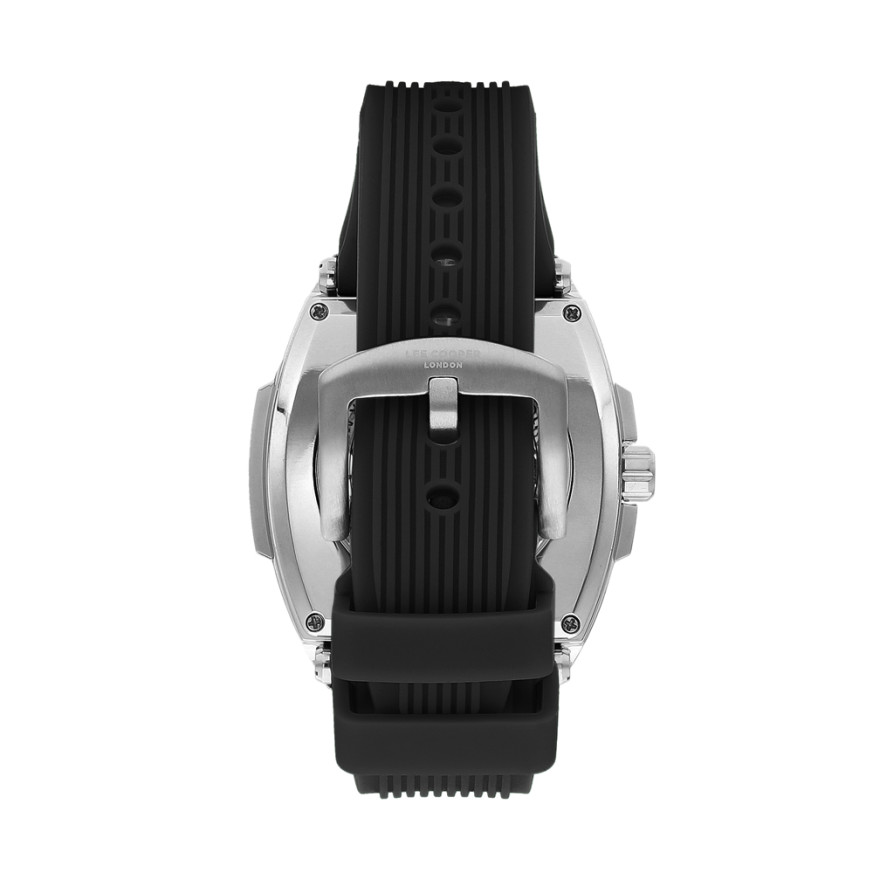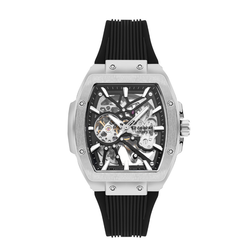 Мъжки часовник Lee Cooper с модерен впечатляващ дизайн. Моделът е с дисплей тип скелетен, през който може да се наблюдава автоматичния механизъм калибър G3265ZH. Стъклото е минерал-кристал. Корпусът е изработен от супер метал и е в комбинация със силиконова каишка. Водоустойчивост 5 ATM - допускат се леки пръски и взимане на душ, не се препоръчва обилно мокрене.