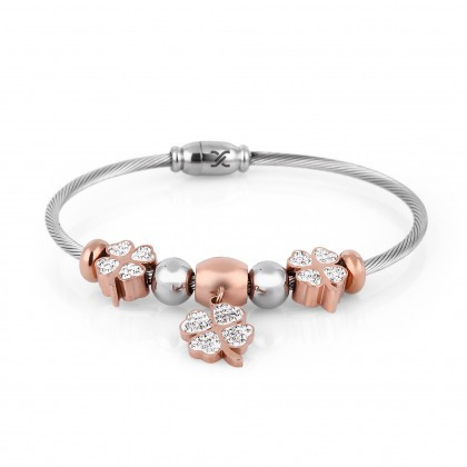 Дамска гривна Daniel Klein с детайли във формата на четирилистни детелини, допълнени от кристали. Изработена от неръждаема стомана.