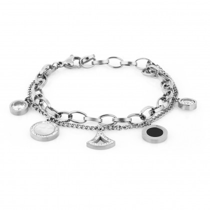 Дамска гривна Daniel Klein със стилни висулки, допълнени от бляскави кристали и седеф. Изработена от неръждаема стомана в сребрист цвят.
