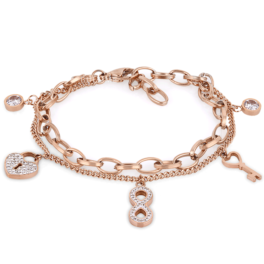 Гривна Daniel Klein изработена от неръждаема стомана в нежен розово-златист цвят. Стилни висулки, допълнени от нежни кристали. Регулируем модел.