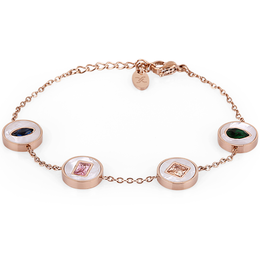 Елегантна дамска гривна Daniel Klein изработена от неръждаема стомана в нежен розово-златист цвят. Стилни кръгли детайли, допълнени от кристали и седеф. Регулируем модел.