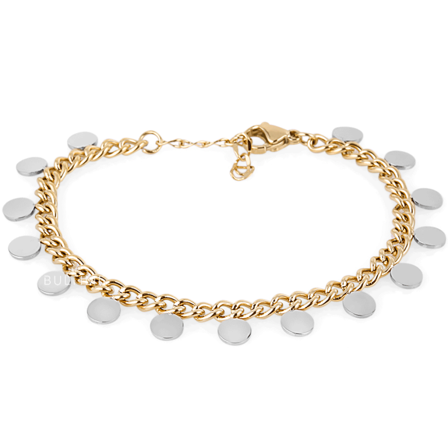 Златиста дамска гривна Daniel Klein изработена от неръждаема стомана. Моделът е с изчистен дизайн със свободно падащи висулки в сребрист цвят.