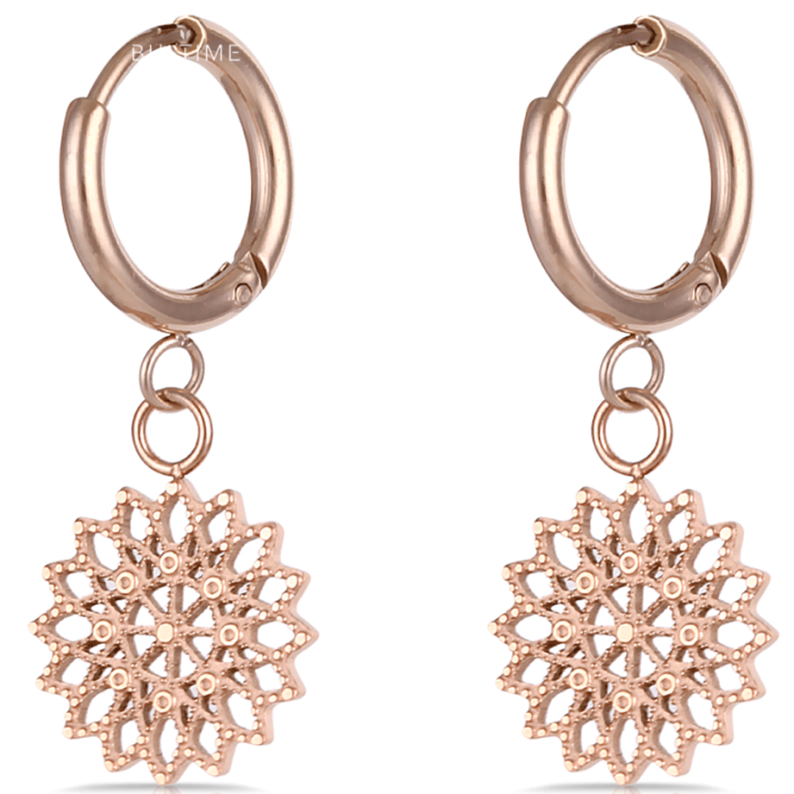 Дамски обеци Daniel Klein в цвят розово злато с нежни висулки във формата на цвете. Изработени от неръждаема стомана.