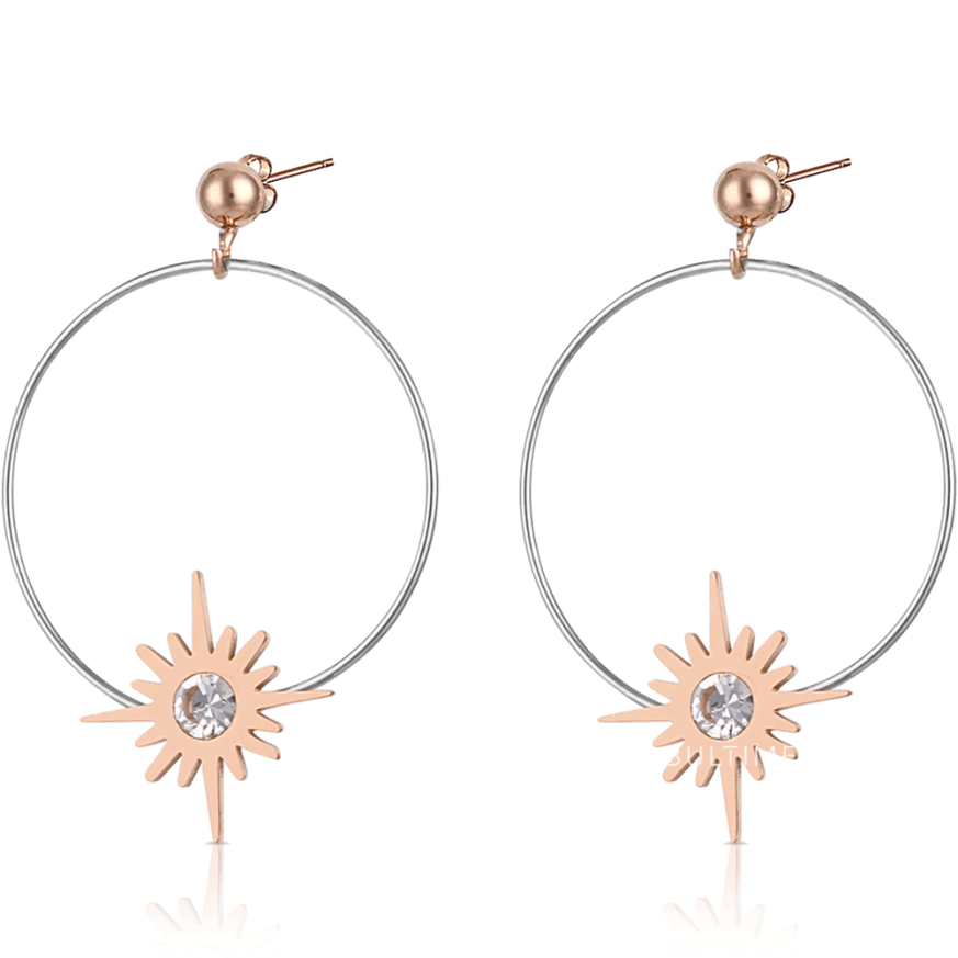 Дамски обеци Daniel Klein с декоративен елемент звезда и нежен кристал в средата. Моделът е изработен от неръждаема стомана.