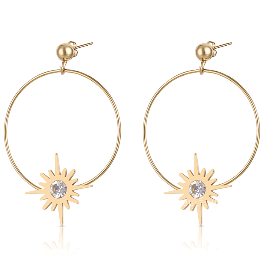 Дамски обеци Daniel Klein с декоративен елемент звезда и нежен кристал в средата. Моделът е изработен от неръждаема стомана.