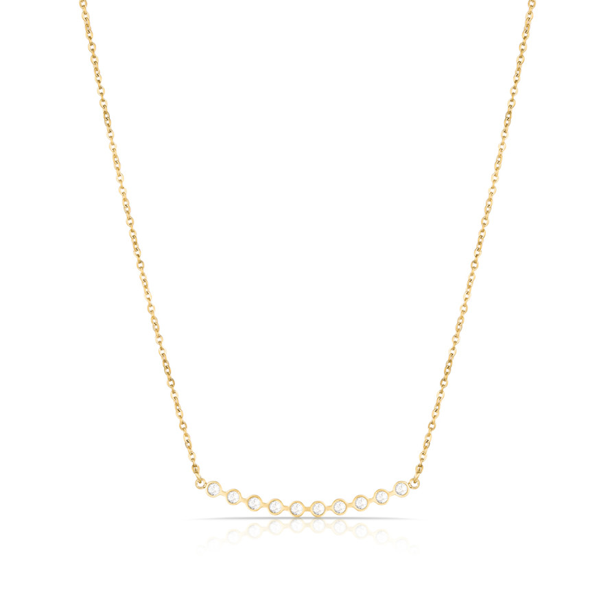 Елегантно дамско колие Daniel Klein изработено от неръждаема стомана в златист цвят. Моделът е с декоративен елемент с инкрустирани кристали.