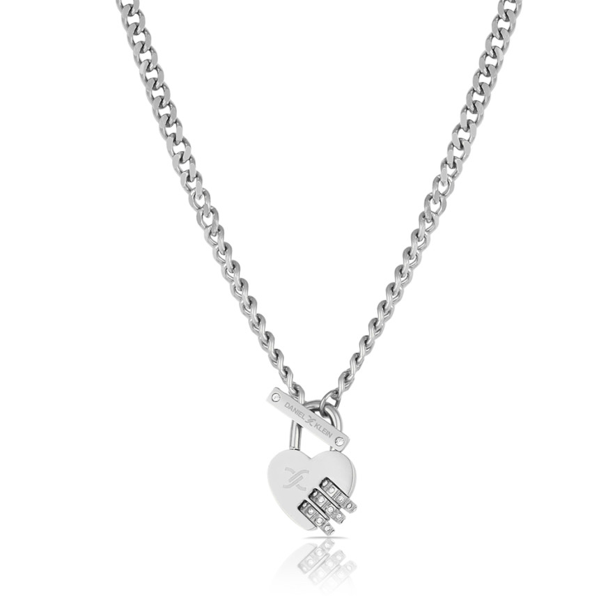 Дамско колие Daniel Klein в сребрист цвят с висулка във формата на сърце с инкрустирани кристали. Изработено от неръждаема стомана.