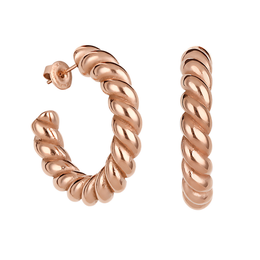Дамски обеци халки  Daniel Klein в цвят розово злато. Изработени от неръждаема стомана.