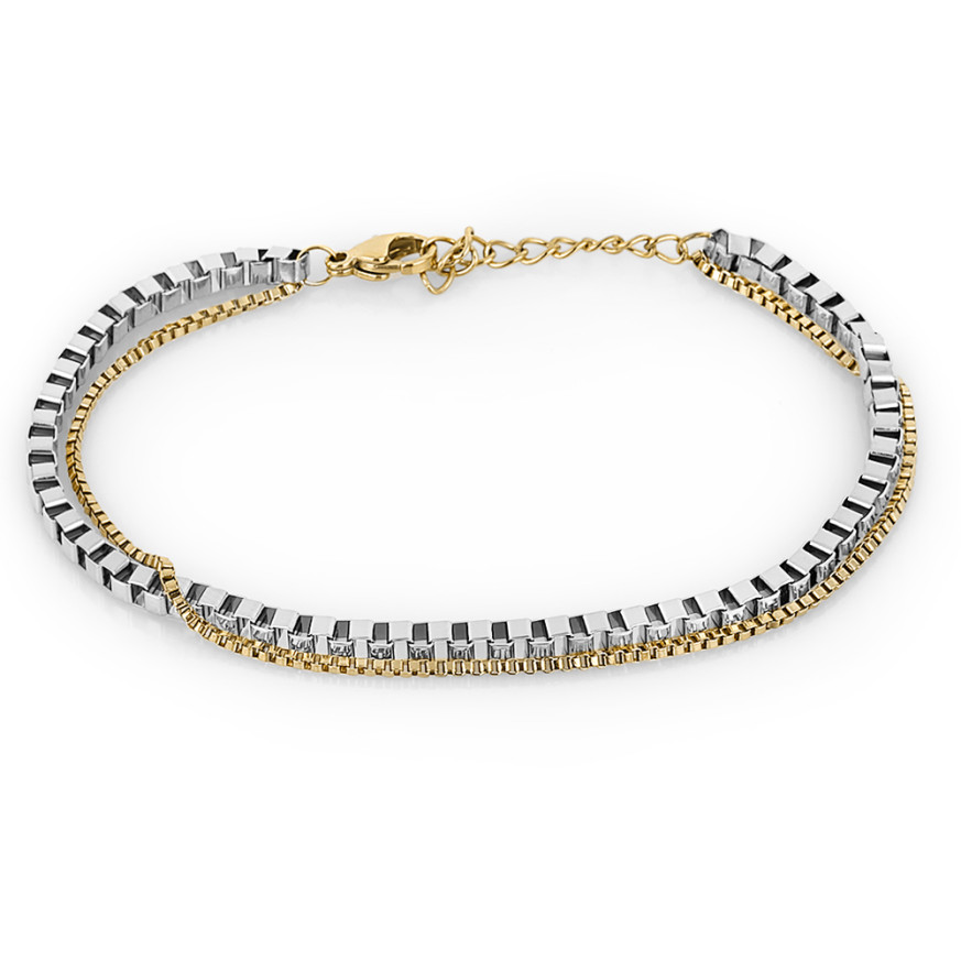 Двуредова дамска гривна с интересен дизайн. Изработена от неръждаема стомана.