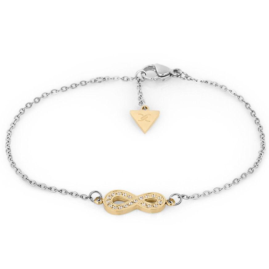 Дамска гривна Daniel Klein изработена от неръждаема стомана. Нежнен елемент безкрайност, допълнен от бляскави кристали. Гривната e с възможност за регулиране на дължината при закопчаване.