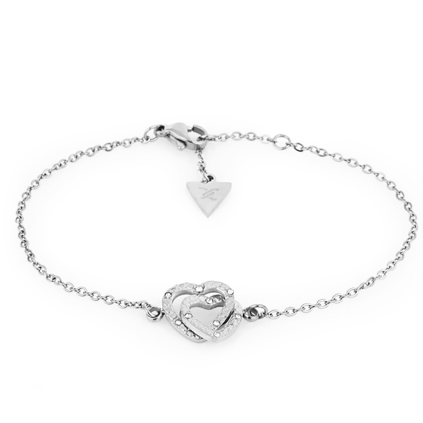 Дамска гривна Daniel Klein изработена от неръждаема стомана. Нежни елементи сърца с декорация от бляскави кристали.