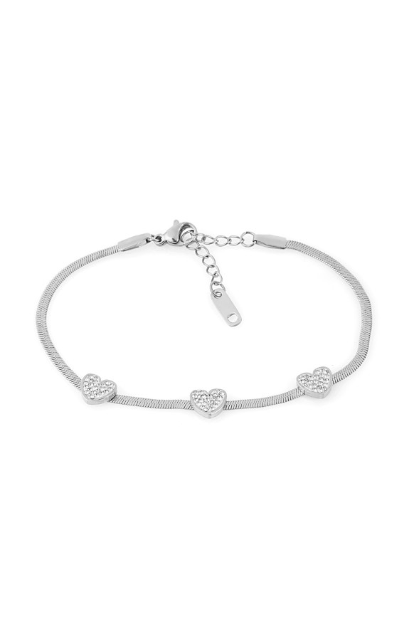Дамска гривна Daniel Klein с нежен дизайн. Изработена от неръждаема стомана. Моделът е с декоративни елементи във формата на сърце с инкрустация.