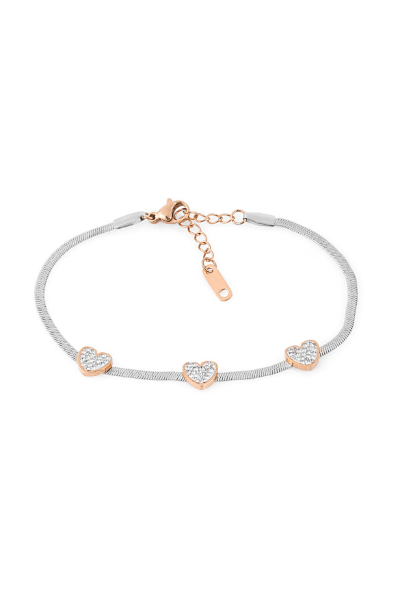 Дамска гривна Daniel Klein с нежен дизайн. Изработена от неръждаема стомана. Моделът е с декоративни елементи във формата на сърце с инкрустация.